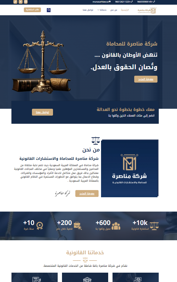 شركة محاماة في المملكة العربية السعودية حيث تضم نخبة منتقاة من المحامين والمستشارين المؤهلين علميا وعملياً في مختلف المجالات القانونية مشكلين بذلك فريق عمل متكامل لخدمة الأفراد والمؤسسات والشركات وقطاع الاعمال بما يتوافق مع التطورات المستمرة في النظام القانوني بالمملكة العربية السعودية .